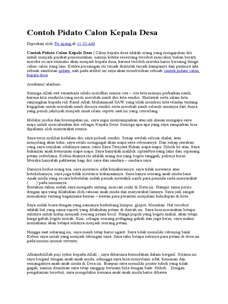Contoh pidato calon kepala dusun. Check spelling or type a new query. Maybe you would like to learn more about one of these? We did not find results for: